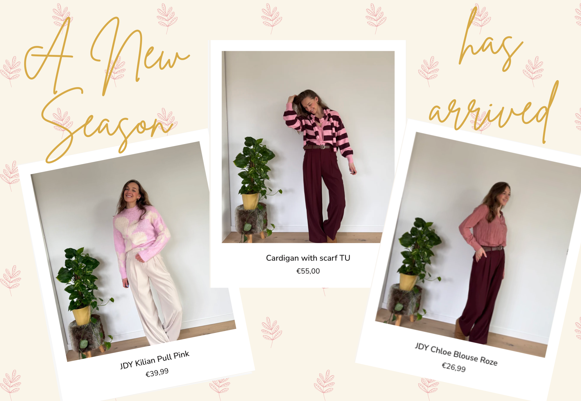 Een gezellige kledingwinkel gelegen te Melle. Wij gaan telkens op zoek naar betaalbare en stijlvolle items die je niet bij elke boetiek zal vinden. Ons assortiment bestaat uit de merken ONLY, ICHI & JDY. Kom langs in de winkel of neem een kijkje in onze webshop